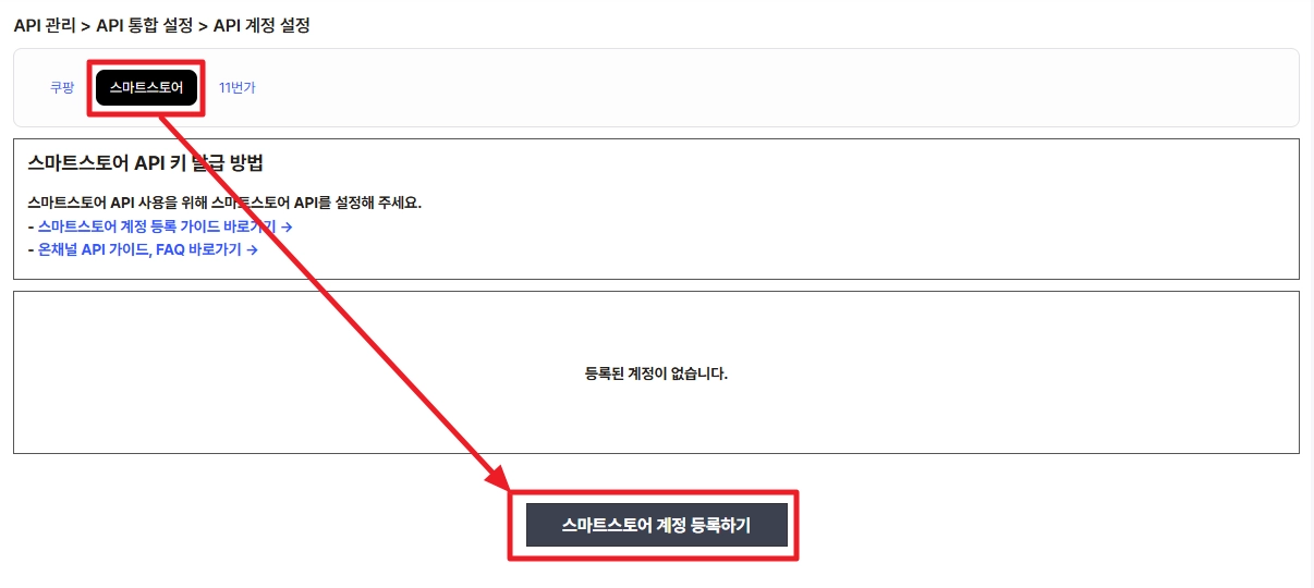 (3) [스마트스토어 > 스마트스토어 계정 등록하기] 버튼을 눌러요.