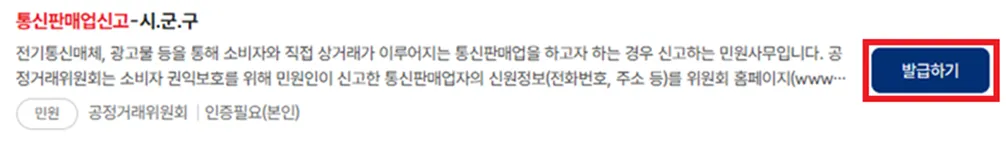 3.2.3. [통신판매업 신고] 검색한 후 [발급하기] 버튼 클릭