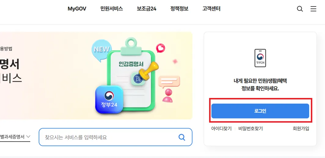 3.2.1. 정부24 사이트에 접속해 공동인증서로 로그인