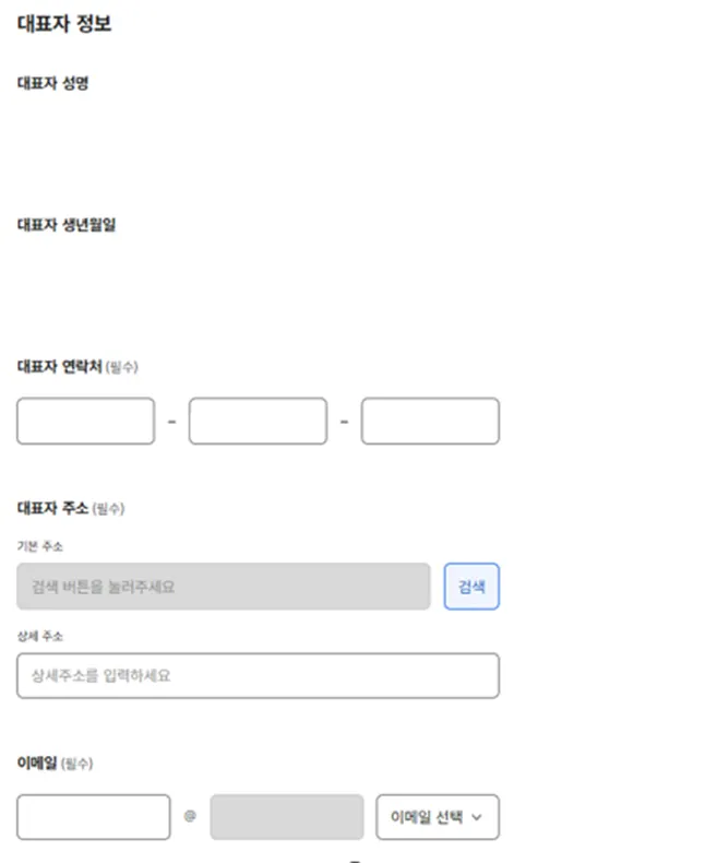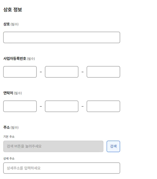 개인사업자의 경우 상호, 사업자등록번호, 연락처, 사업장주소를 입력하세요.