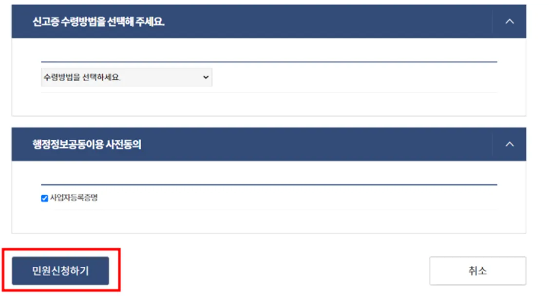 행정정보공동이용에 동의한 경우, 사업자등록증은 제출하지 않아도 됩니다.