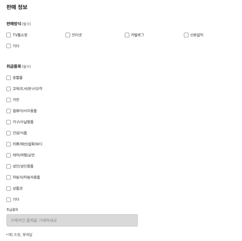 판매 방식과 취급 품목을 선택하세요.