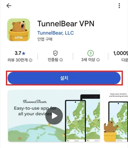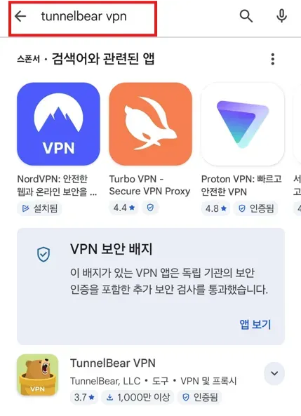 Play 스토어에서 tunnelbear vpn 검색하고 설치합니다.