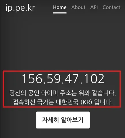 정상적으로 한국 VPN 연결 됐는지 아래 링크를 통해서 확인할 수 있습니다.