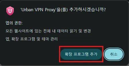 팝업창이 나타나면 “확장 프로그램 추가” 버튼을 눌러주세요.
