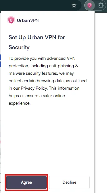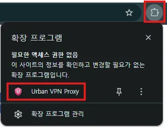 Chrome 브라우저 우측 상단에서 Urban VPN 아이콘을 눌러요.