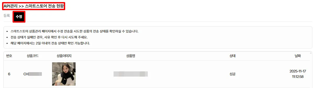 03. 스마트스토어 수정 전송 결과 확인 방법