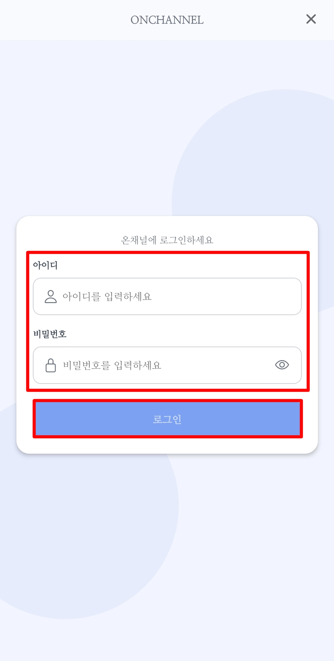 온채널 앱은 기존 온채널 계정으로 로그인할 수 있습니다.