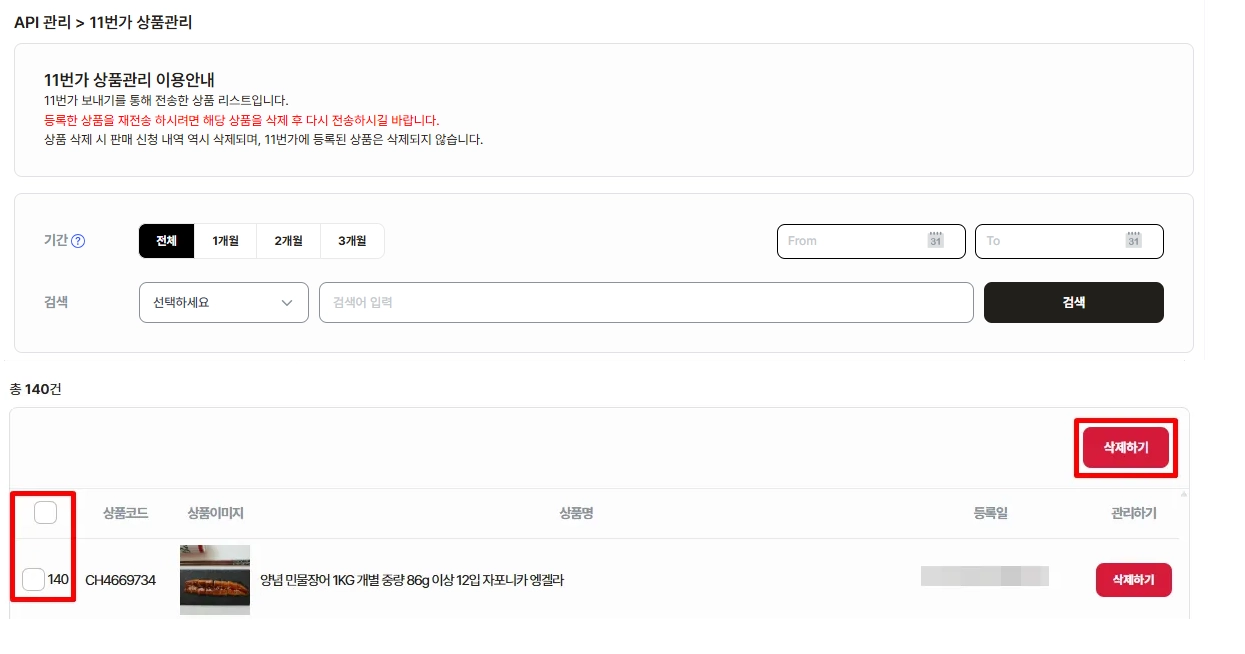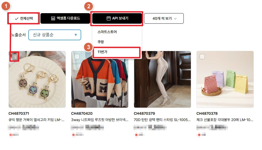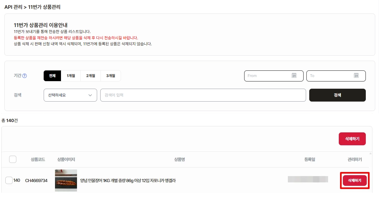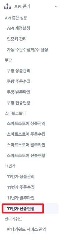 (해당 메뉴에서는 API 통해 11번가로 전송한 상품만 확인할 수 있어요.)