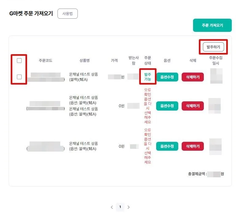 G마켓에서 '신규 주문' 상태가 아니면 개별 주문해 주세요! → 주문 진행 가이드