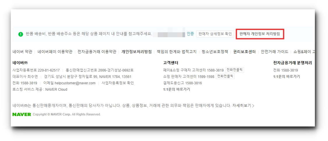 회사 홈페이지에 별도로 ‘개인정보 처리방침’을 공개하지 않는 스마트스토어 판매자 회원의 경우