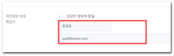 [판매자 개인정보처리방침] 영역에서 개인정보 보호 책임자 정보를 입력해요.