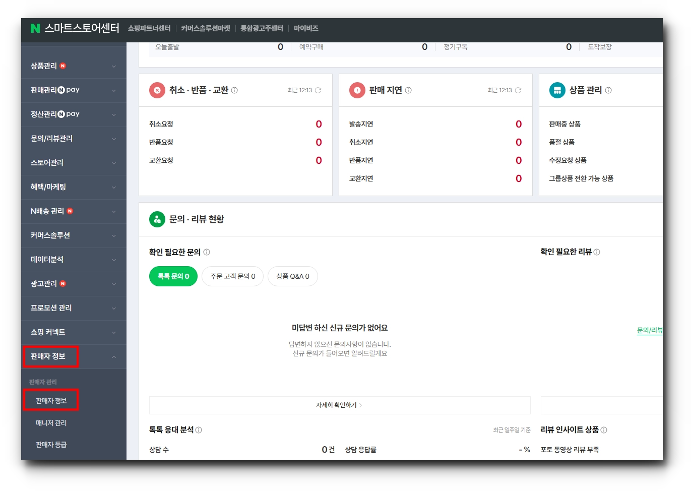 [스마트스토어 센터 > 판매자 정보 > 판매자 정보] 메뉴를 클릭하고 스크롤을 내려주세요.