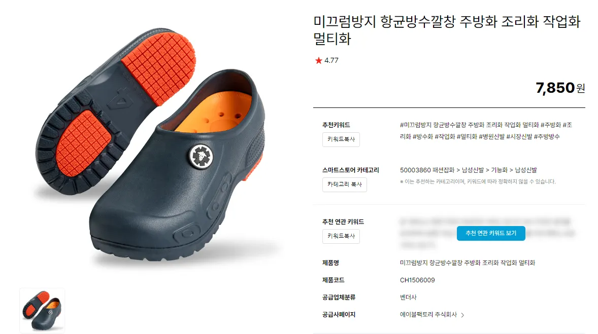 주방화, 조리화, 작업화 등의 다양한 상품군에 포함된다면,