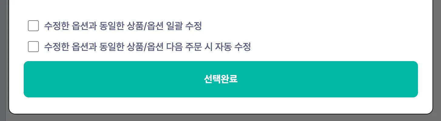 → 옵션 수정 시 ‘수정한 옵션과 동일한 상품/옵션 다음 주문 시 자동 수정’을 설정할 경우, 동일한 상품과 옵션에 대하여 다음부터 옵션을 매칭하지 않아도 자동 발주할 수 있습니다.