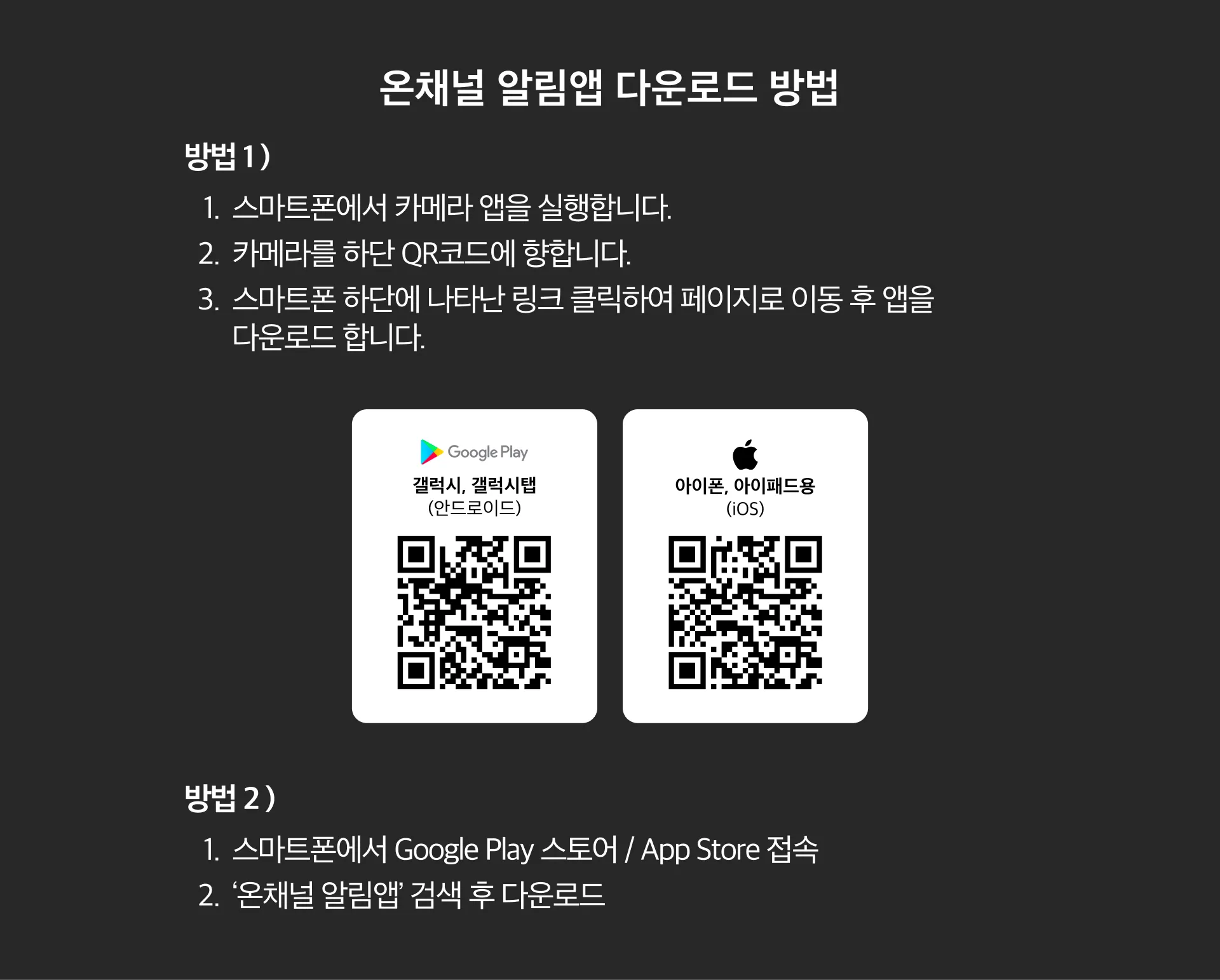 아래의 알림앱 다운로드 방법을 확인하셔서 앱을 다운로드 받으시고, 매일 2회 상품/주문/송장/요청함 관련 알림을 받아보세요.