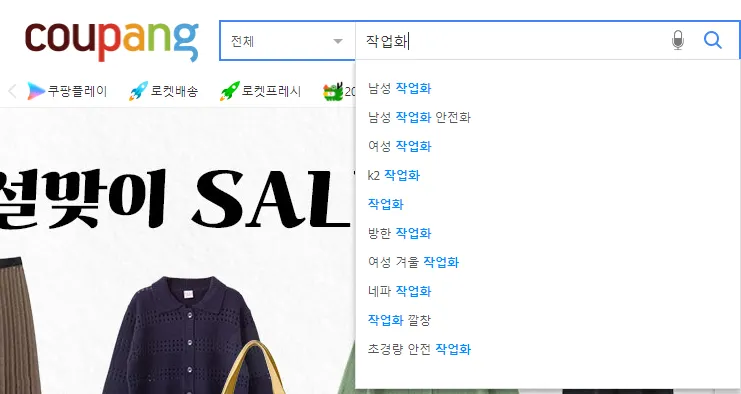 상품의 유사어나 상품군, 메인키워드를 활용해 쿠팡 연관검색어, 자동완성 검색어를 확인해 봅니다.