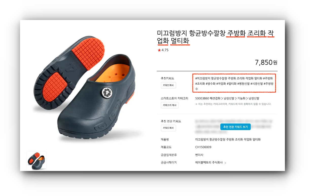 상품을 특정할 수 있는 메인 키워드를 선정합니다.