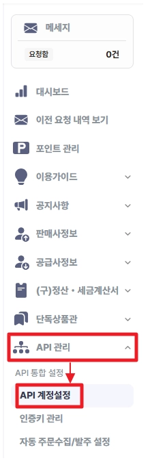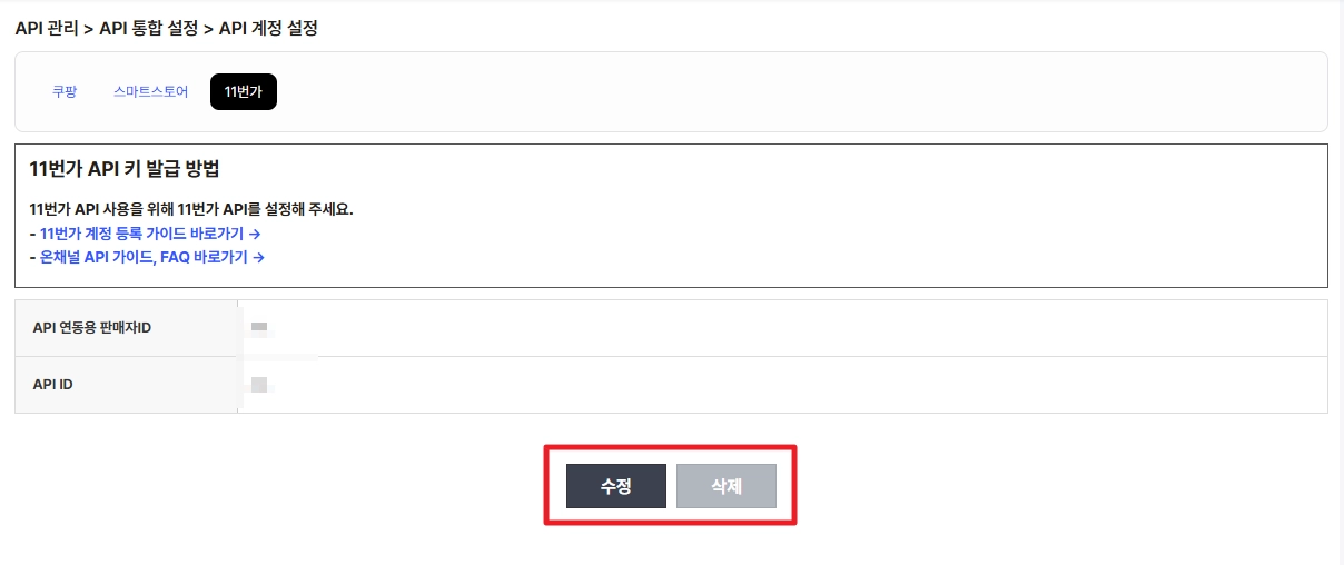 (2) [마이페이지 > API 관리 > API 통합 설정 - API 계정 설정] 에서