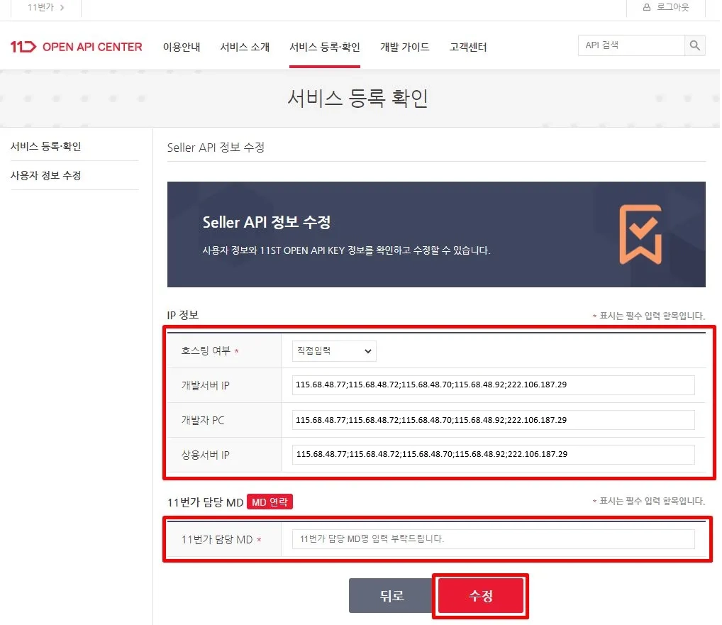 1단계 : 11번가에서 설정하기