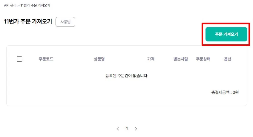 [주문 가져오기] 버튼을 눌러 최근 일주일 간 주문 건을 수집할 수 있어요.