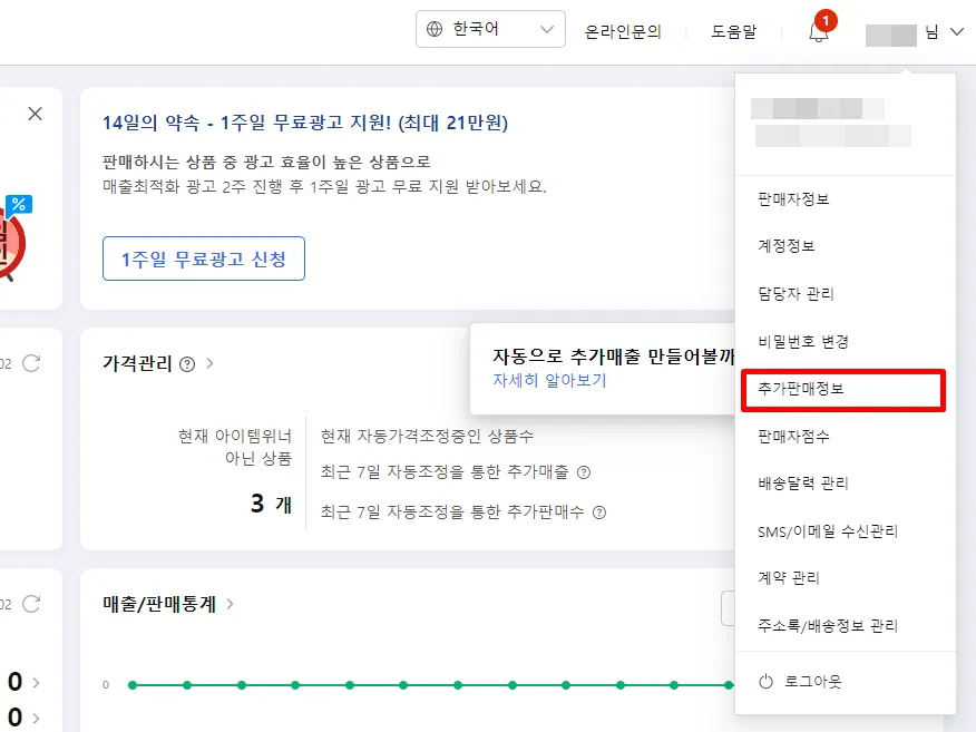 하단으로 확인되는 메뉴 중 [추가판매정보] 버튼을 눌러요.