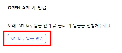 이동한 창 하단의 [API Key 발급 받기] 버튼을 눌러요.