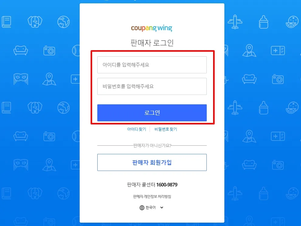여러 판매 사이트 중 [쿠팡 > 쿠팡 계정 등록하기] 버튼을 눌러요.