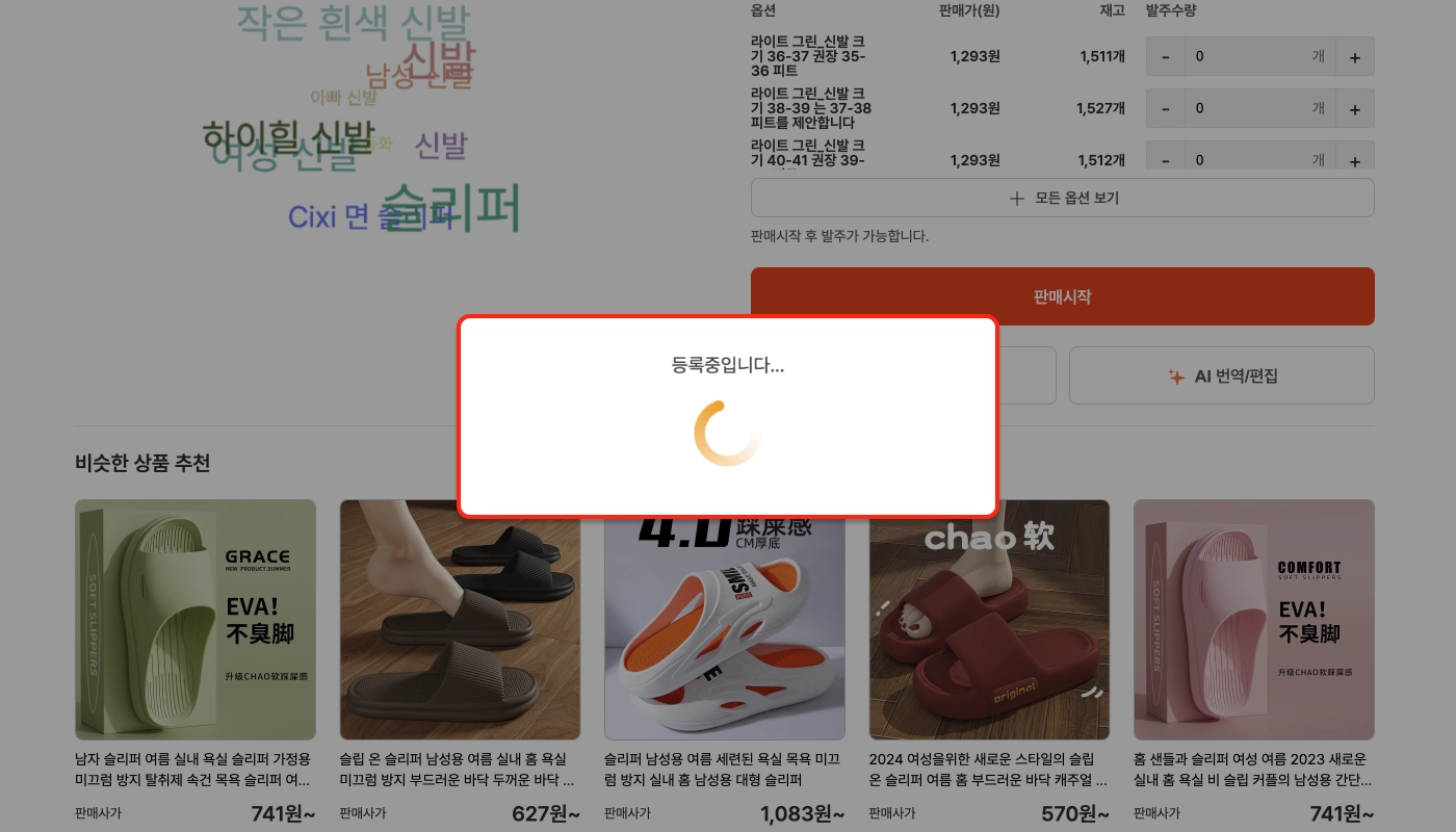 1688상품관의 상품 목록은 로딩 시간이 조금 걸릴 수 있어요.