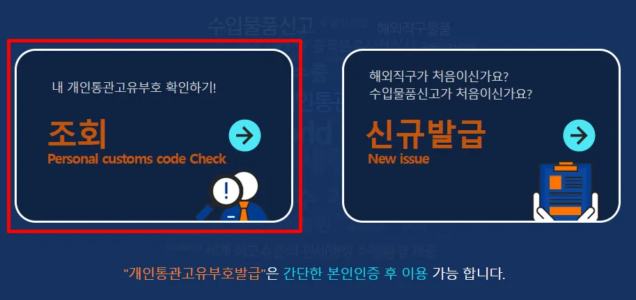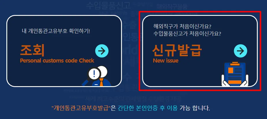 관세청 개인통관고유부호 홈페이지에서 발급 (PC, 모바일 모두 접속 가능)