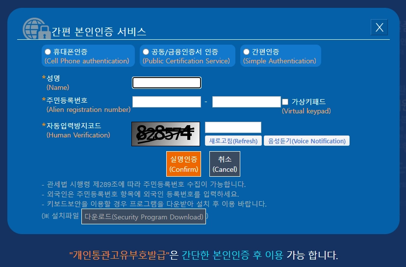 개인통관고유부호 발급 방법