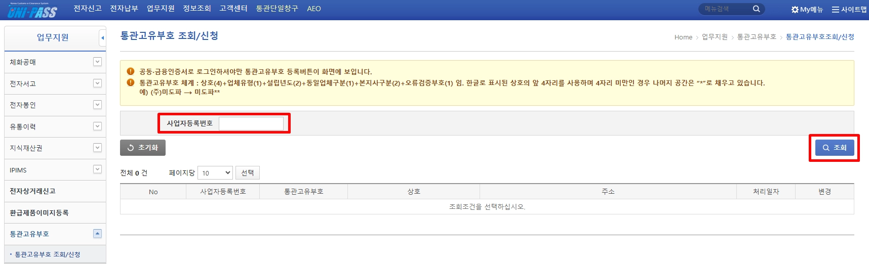 관세청 개인통관고유부호 내 [조회] 메뉴로 들어가요.
