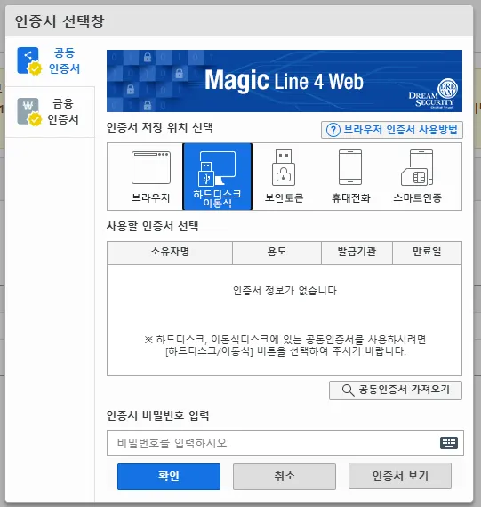 사업자 명으로 된 공동인증서 인증을 진행해요.