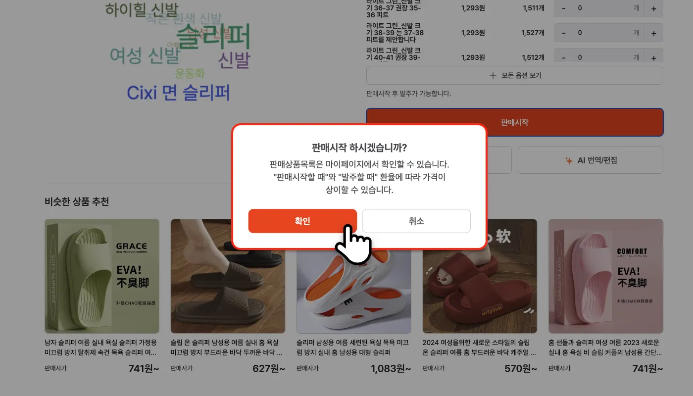상품 정보를 살펴보고 상품이 마음에 들면 ‘판매시작’을 눌러주세요.