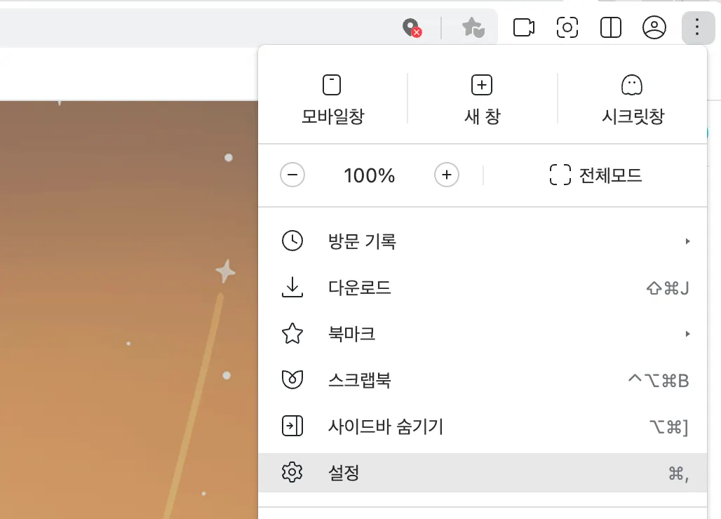 웨일 브라우저 오른쪽 상단 점 세개 (…) 클릭