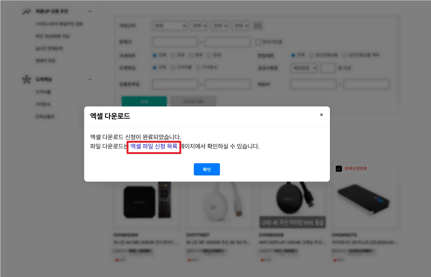 *다운로드할 엑셀 폼을 누르면 선택했던 상품이 자동으로 판매 신청이 돼요.