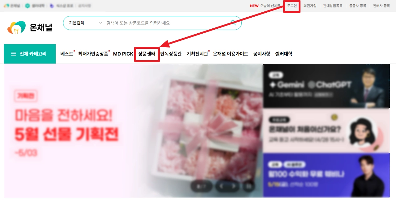 (1) 상품센터 접속
