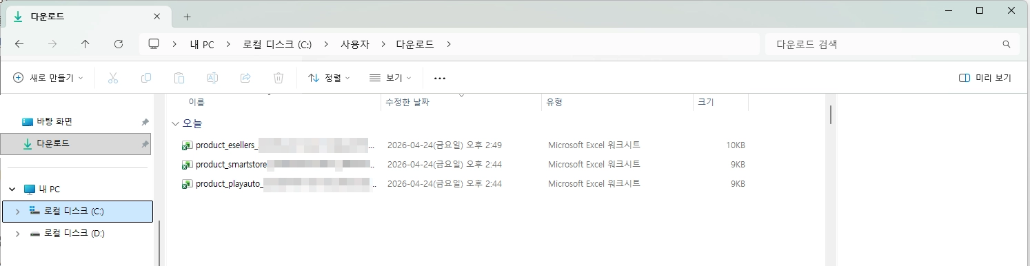 다운로드 완료되면 아래 가이드 내을 참고해서 상품 등록할 사이트에 엑셀로 상품을 등록해 주세요.