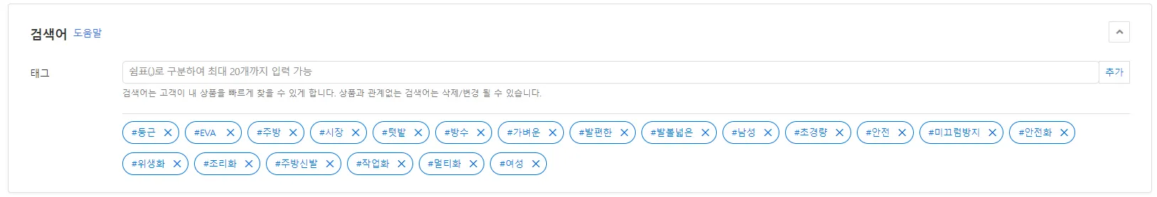상품명과 중복되는 키워드가 있는지 다시 한번 확인해 주세요.