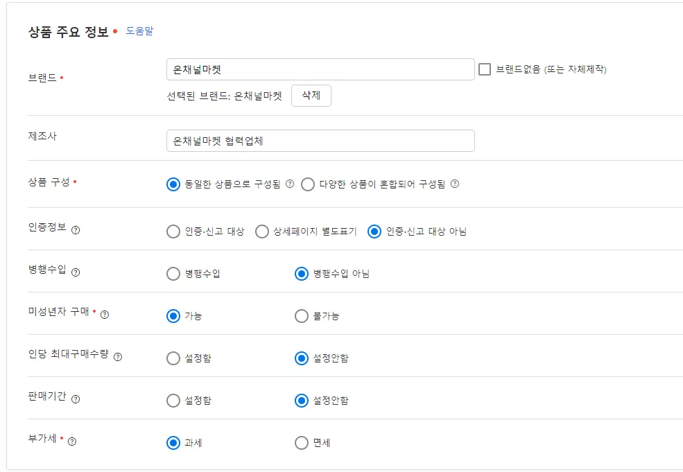 온채널에서 확인한 정보대로 쿠팡에 입력합니다.