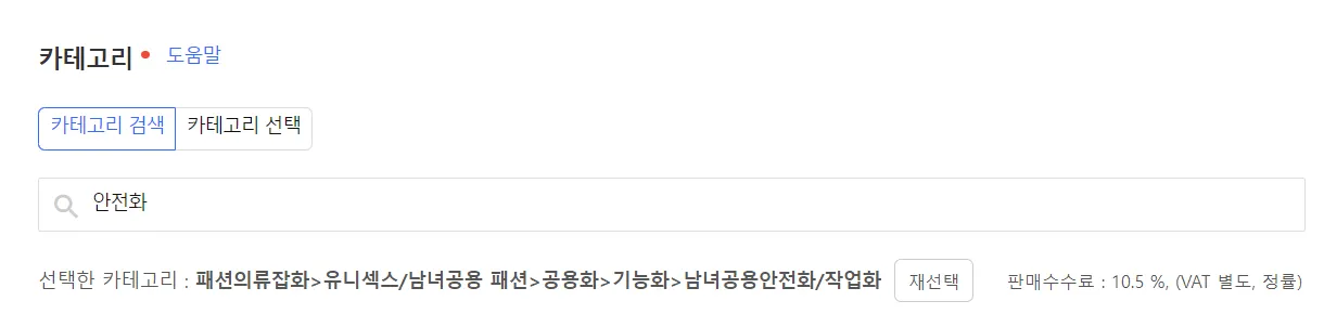 VAT 별도! 카테고리 선정 후 확인되는 수수료에 1.1%를 곱해 수수료를 계산하세요!