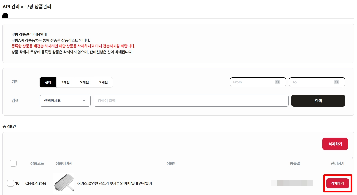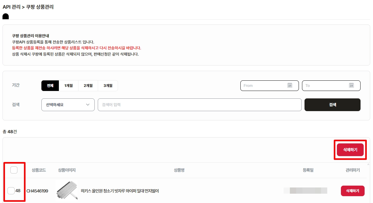 04. 쿠팡으로 전송한 상품 확인/삭제하기